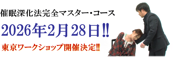 ちなみに、「A方式」(AW)を中心とした催眠への導入は6月シーズンセミナーで教えているため、この2月シーズンセミナーでは、「N方式」を中心とした催眠導入法と催眠深化法を徹底的に学んでいただき、理論と技法を完全にマスターしていただきます。 |